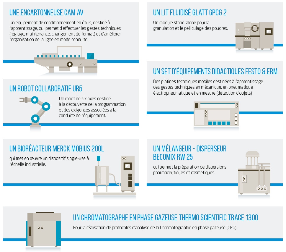 Cette année, le Groupe IMT s’est enrichi de nouveaux équipements semi-industriels au sein de l’ensemble de ses établissements. Notre volonté est de déployer sur nos sites les technologies qui répondent aux exigences du marché de l’industrie pharmaceutique, biotechnologique et cosmétique en matière de formation professionnelle.